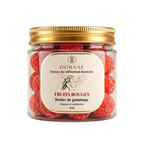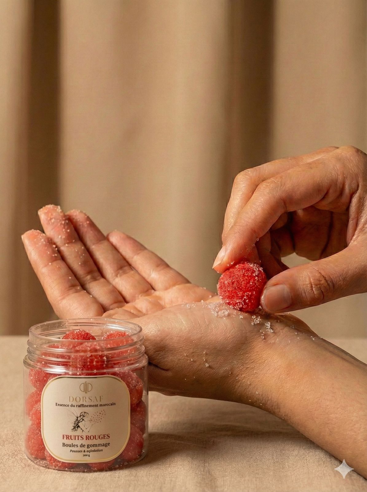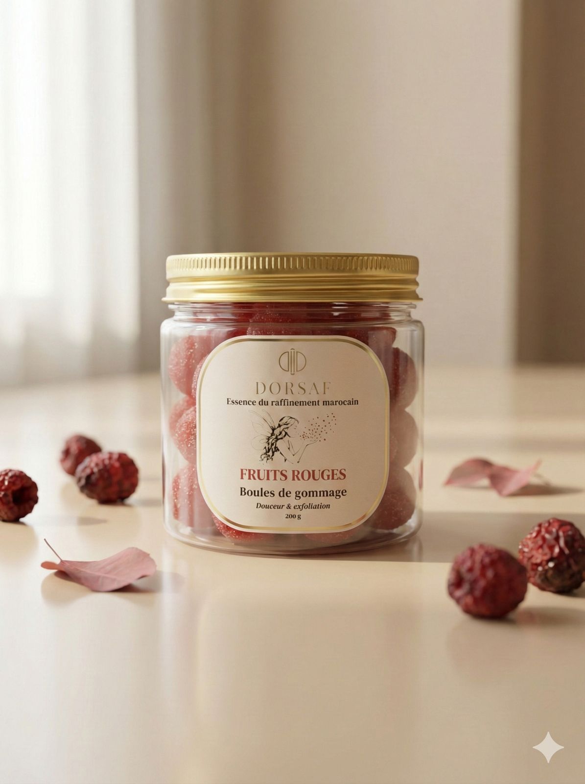 Boule gommage aux fruits rouges exfoliant la peau en douceur,